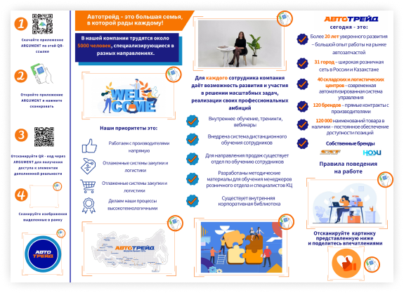 «Самым ценным стало то, что сотрудники в буквальном смысле «добывали» себе знания, сканируя AR-объекты в рабочей тетради, ища подсказки, которые мы разместили на различных поверхностях в нашем офисе. Фактически весь офис стал AR-объектом, и персонал смог не только познакомиться см людими и офисом, но и решить основную задачу, которую мы перед ними ставили – трениновку навыков коммуникации».